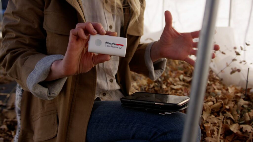 Bosch, often turns to her flower farm for color inspiration, using her ColorReader EZ to capture just the right hue for whatever design project she’s working on. For Emily and Nate, Bosch scanned the color of a eucalyptus plant by placing the ColorReader EZ on the flat surface of one of its leaves. The resulting color match was a perfectly balanced soft green, that looked both modern and organic – perfect for the kitchen refresh!