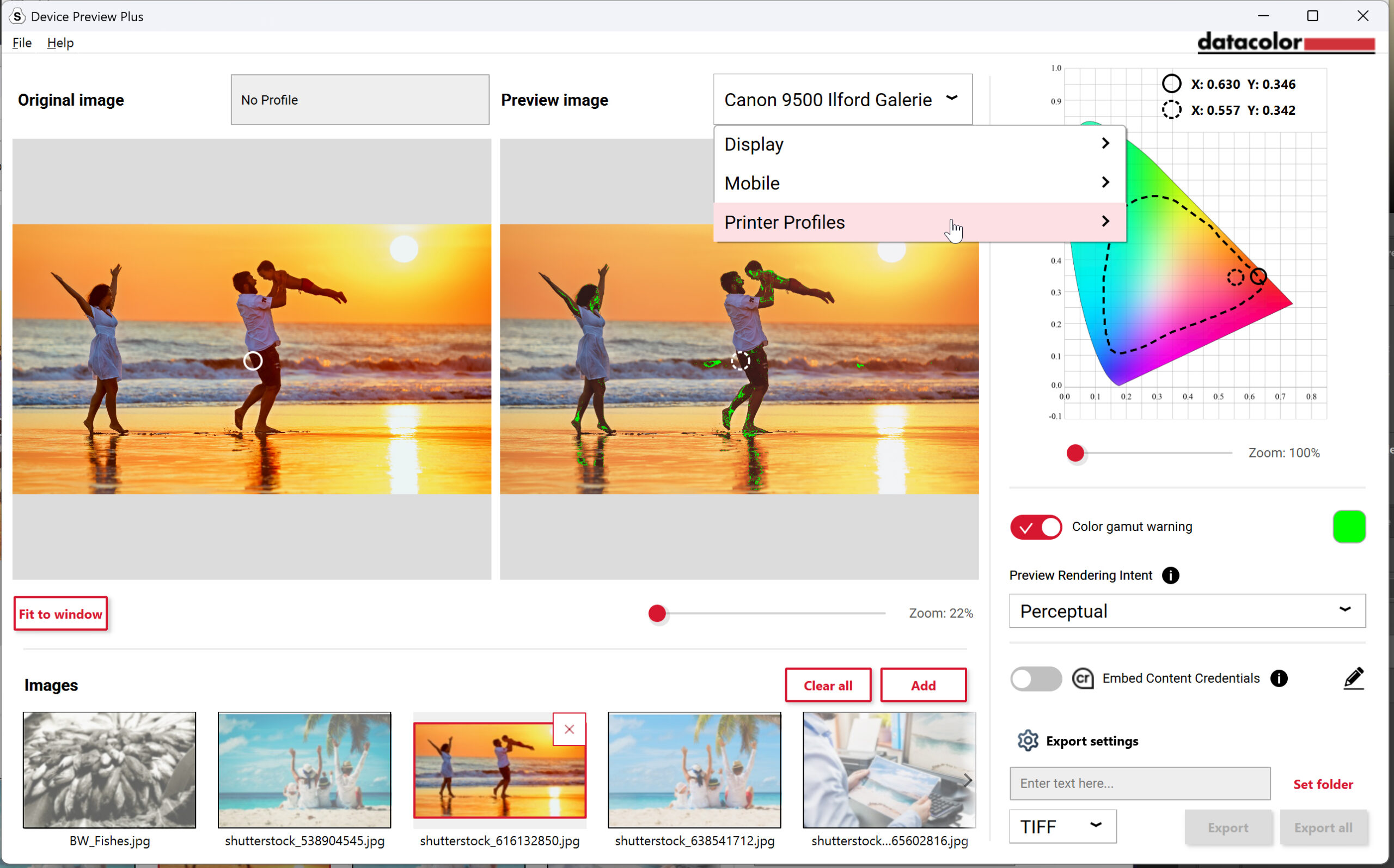 The new Spyder from Datacolor also provides this functionality through its DevicePreview® feature, which simulates how colors will appear on specific papers or displays. SpyderPro’s DevicePreview® Plus, goes even further, offering more extensive comparison and control options. These features are particularly valuable for users who don’t want to invest in expensive image editing software or commit to a subscription.